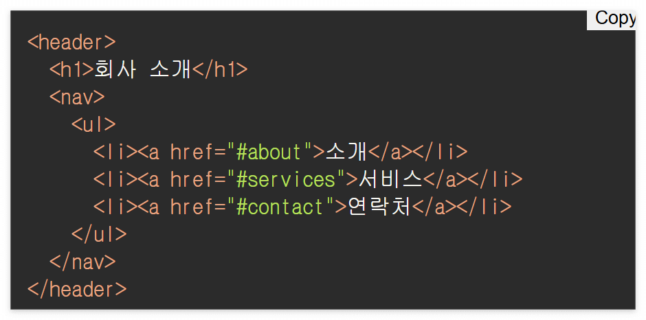 웹페이지의 구조와 내용을 정의하는 마크업 언어입니다. 웹페이지의 뼈대라고 생각하면 됩니다.